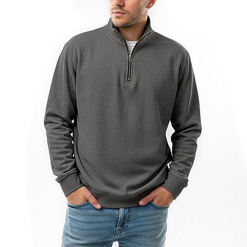 Felpa polo da uomo in finta pelle scamosciata con cerniera, per le vacanze, da strada, a maniche lunghe, alla moda, basic, tinta unita, semplice, autunno, primavera, autunno, tutte le stagioni,