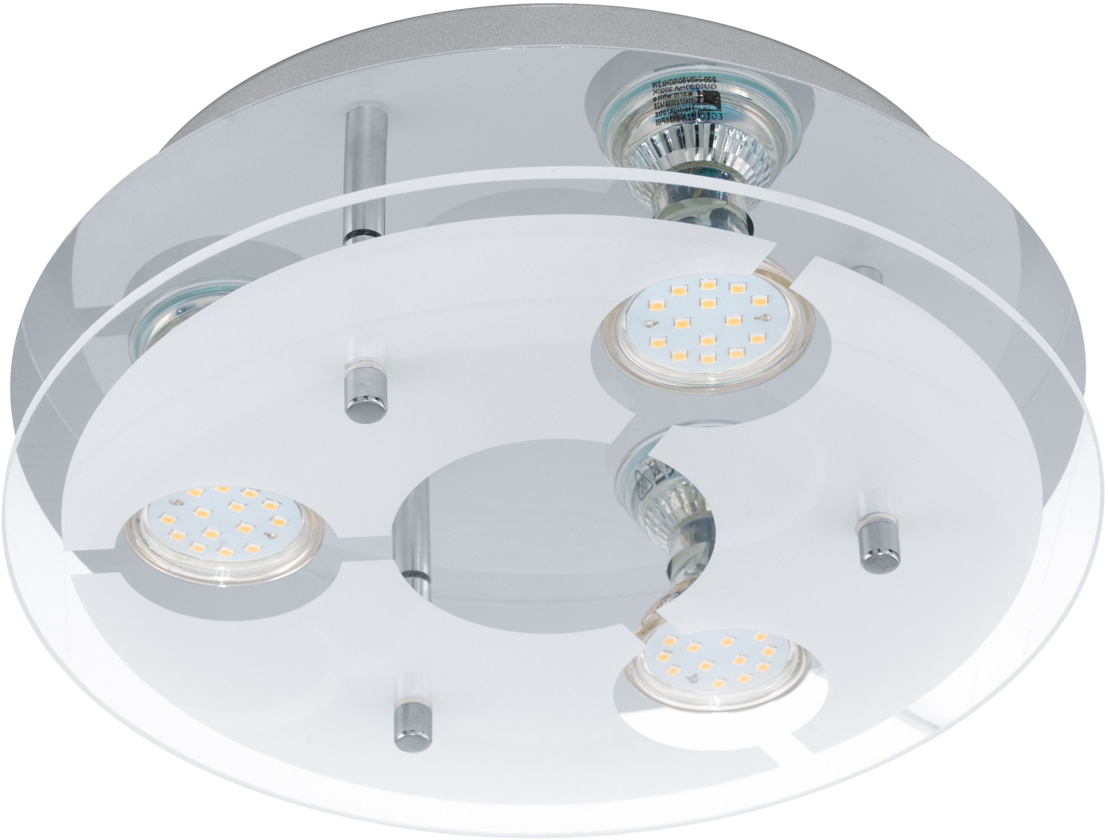 EGLO Deckenleuchte "CABI Deckenlampe, Edelstahl und Glas, GU10, Wohnzimmerlampe, Lampe", weiß (chromfarben, weiß), 3, Ø 27cm H: 8,5cm, Leuchten, Deckenleuchte, Flur, H8,5 x Ø27cm, chrom, weiß, klar, 3X2,8W inkl.