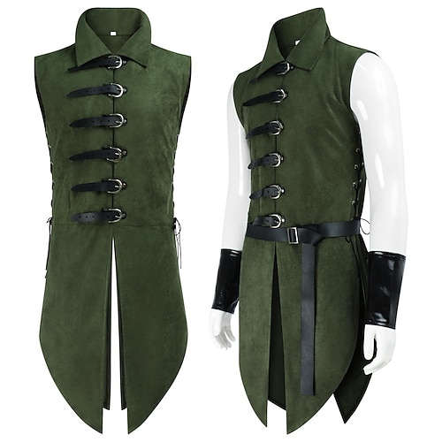 Retrò Vintage Medievale Rinascimento Armatura Gilet Elfo Vichingo Ranger Costume Per uomo Fantasia Halloween Carnevale Performance LARP Fiera Rinascimentale Adulti Gilet Cintura Polsiera