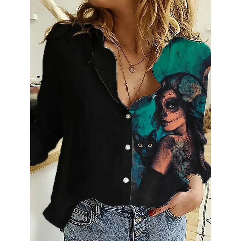 Women's Shirt Skulls Print Button Down Tunic Shirt Collar Long Sleeve Graphic Vintage Tropical Daily Regular Tops Work Daily Holiday s Print Red / black Black White Orange Green Spring