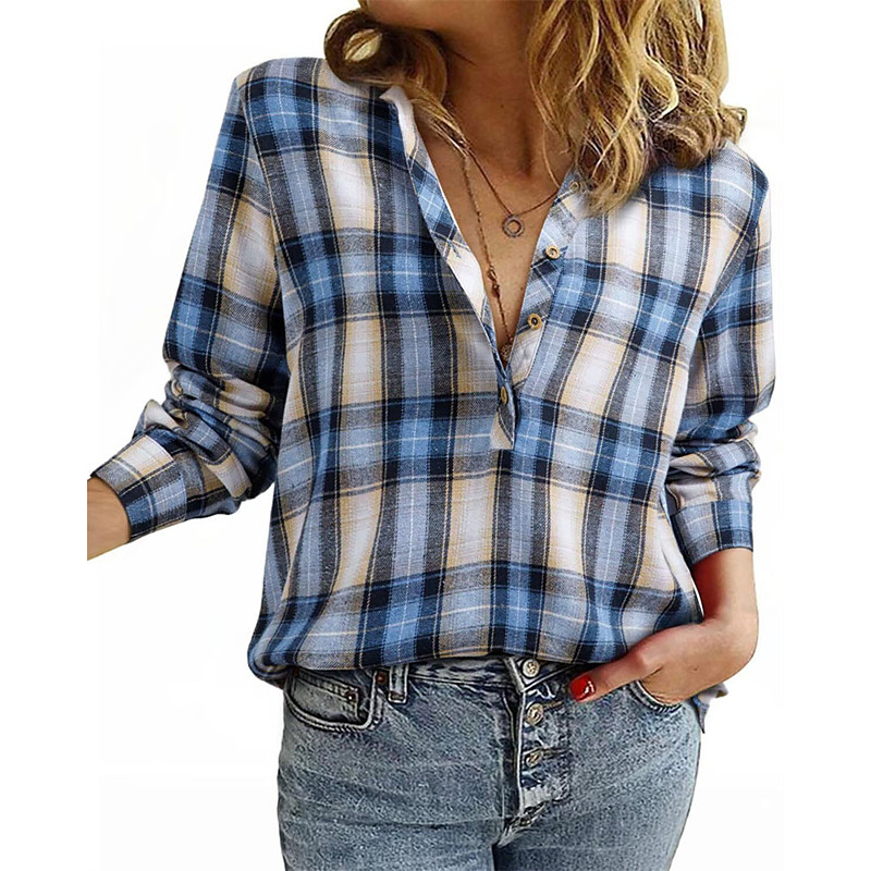 Women's Blouse Dressy Tops Plaid Plain Elegant Vintage Stylish Long Sleeve V Neck Regular Tops Work Daily Holiday Buttons Grass Green Black Red Navy Blue Blue Fall Winter