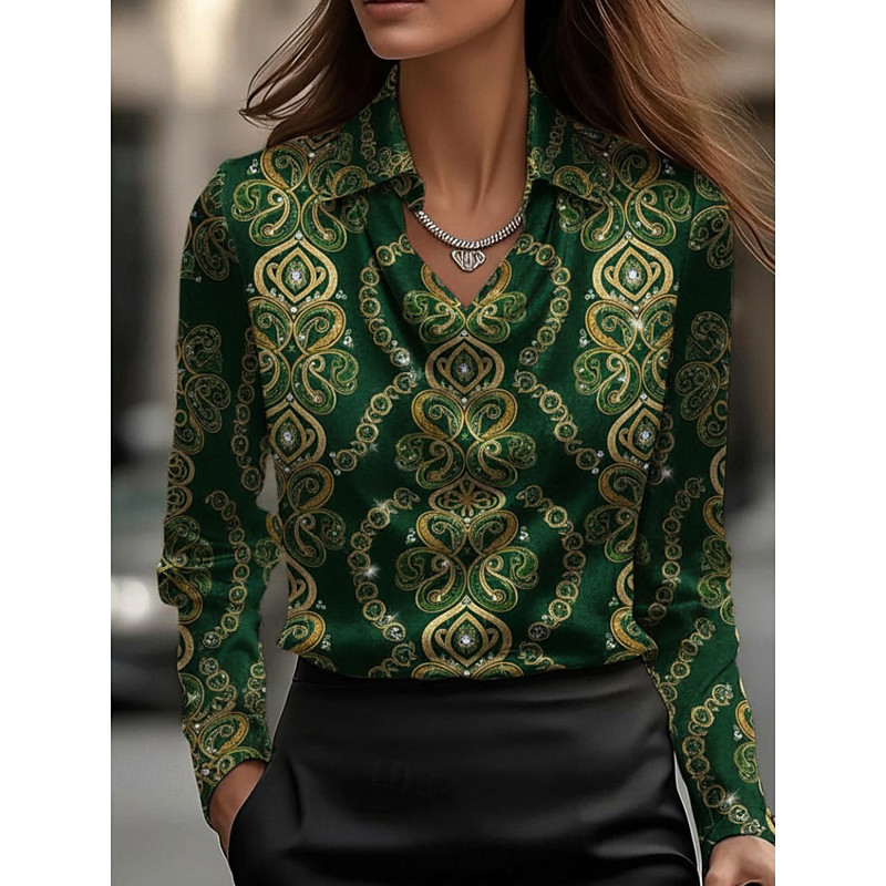 St. Patrick Women's Shirt Shamrock Elegant Vintage Stylish Long Sleeve Cowl Neck Regular Tops Daily Work Holiday Print Draped Green Spring Fall