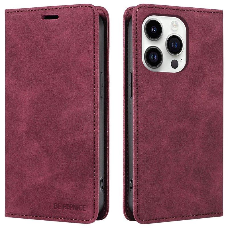 BETOPNICE 003 iPhone 15 Pro Plånboksfodral Konstläder - Röd