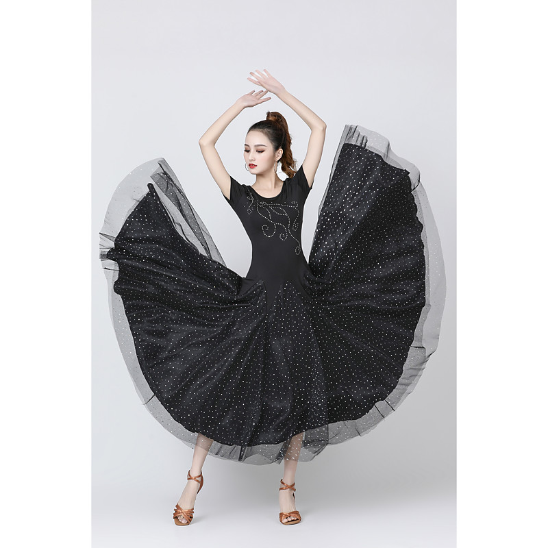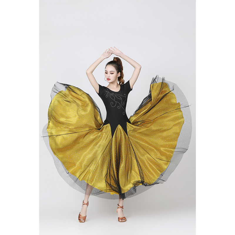 Ballroom Dance Dress Glitter Paillette Women's Training Performance Short Sleeve Natural Satin Milk Fiber