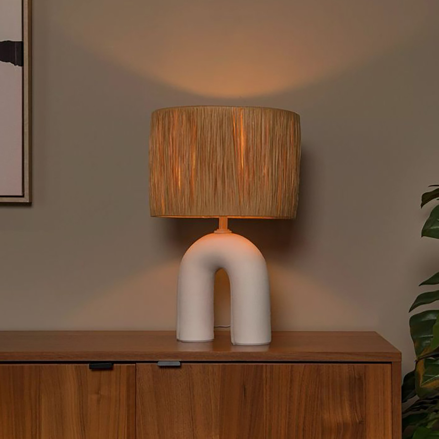 Lucide Ronda - tafellamp - Ø 28 x 45 cm - wit en naturel