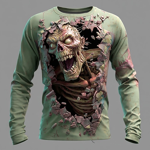 Halloween Herren Zombies 3D T Shirt Langarm T-Shirt 3D-Druck Rundhalsausschnitt Hemd Mode Übertrieben Straße Lässig Täglich Grün 1# Grün 2# Grün 3# Sommer Frühling Herbst Bekleidung S M L XL XXL XXXL