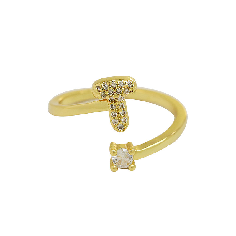 Gold Initial Ring for Women - Adjustable A-Z Alphabet Ring with Beads or Crystals - Personalized Name Jewelry for Everyday Wear, Graduation Season Gift or Special Occasion