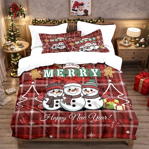 Set copripiumino in piumino stampato a scacchi rossi natalizi, 3 pezzi, comodo set di biancheria da letto per hotel o camera da letto, include 1 copripiumino 2 federe, letto grande, morbido peluche