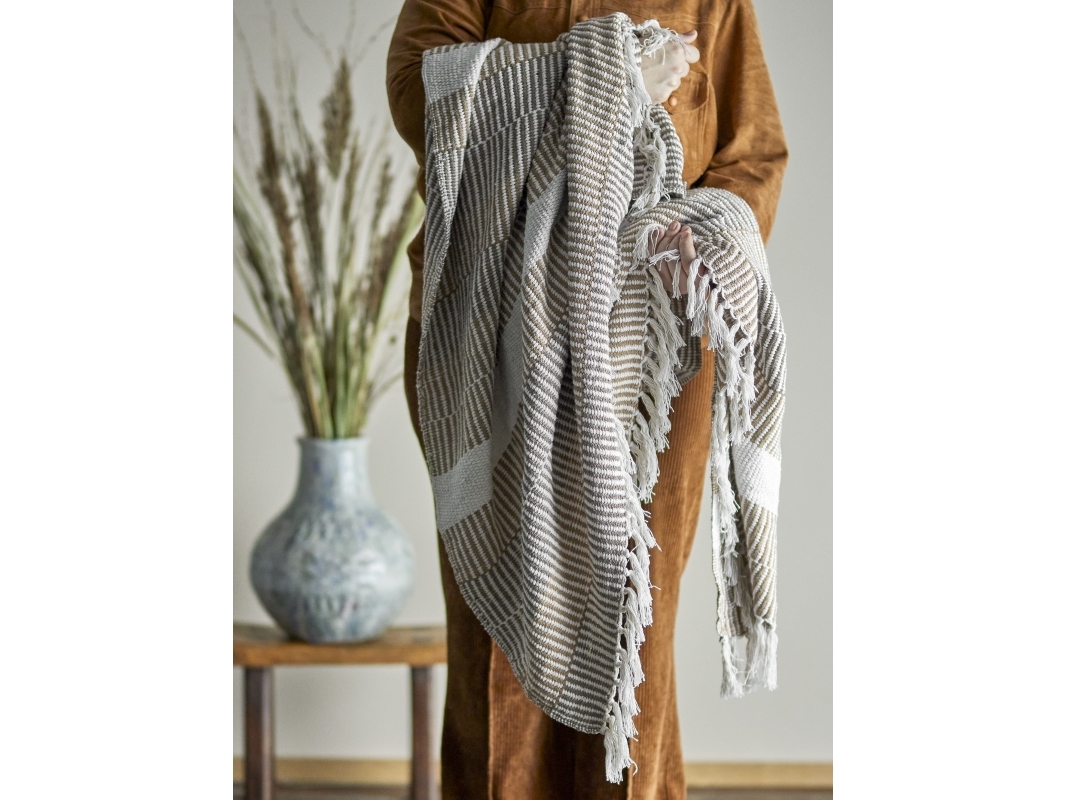 CREATIVE COLLECTION Isnel Plaid, Natur, Genanvendt Bomuld