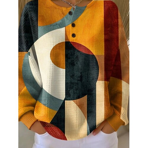 Women's Shirt Blouse Graphic Geometric Plaid Casual Long Sleeve Shirt Collar Regular Tops Daily Patchwork Buttons Print Blue Yellow Red Orange Green Fall Winter