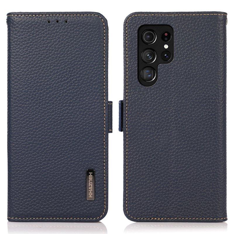 KHAZNEH Samsung Galaxy S26 Ultra Skal Äkta Läder RFID Skydd - Blå
