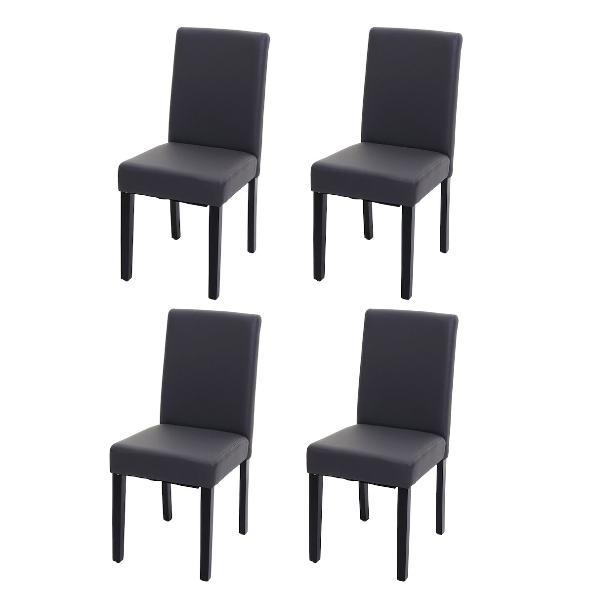 Mendler 4er-Set Esszimmerstuhl Stuhl Küchenstuhl Littau FSC®-zertifiziert ~ Kunstleder, grau matt, dunkle Beine
