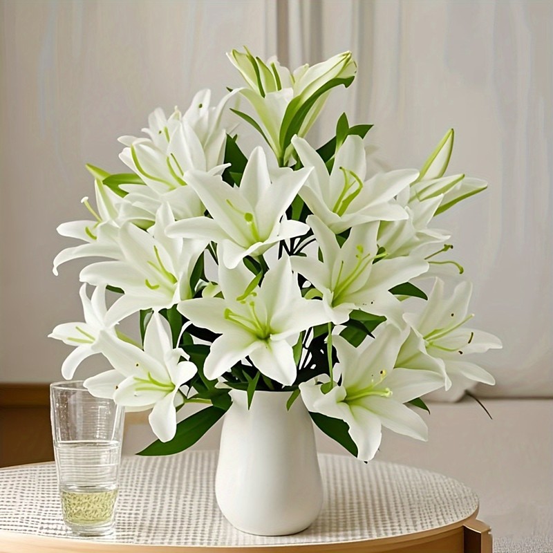 Flower Lantern Modern Lily Flower Blown Glass Table Lamp Bedside Night Light 4 Color Modes Dimmable Fairy Light for Bedroom Living Room E27 Lamp Base