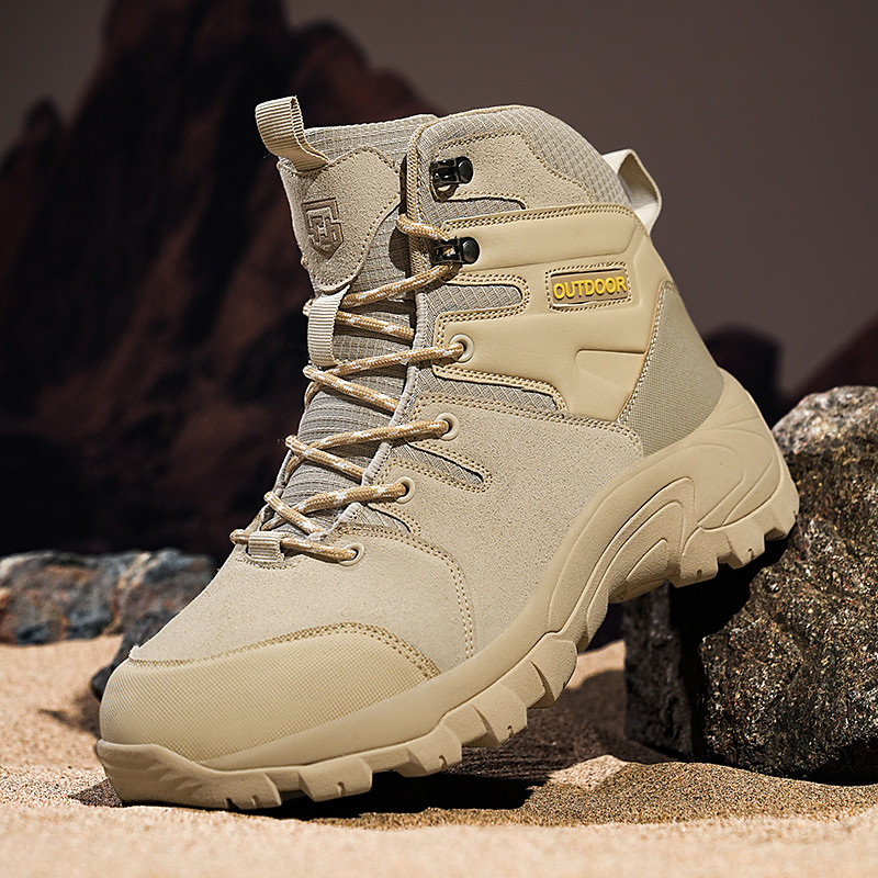 Men's High-Top Tactical Hiking Boots in Beige – Breathable Outdoor Combat Boots for Climbing, Camping and Survival Training