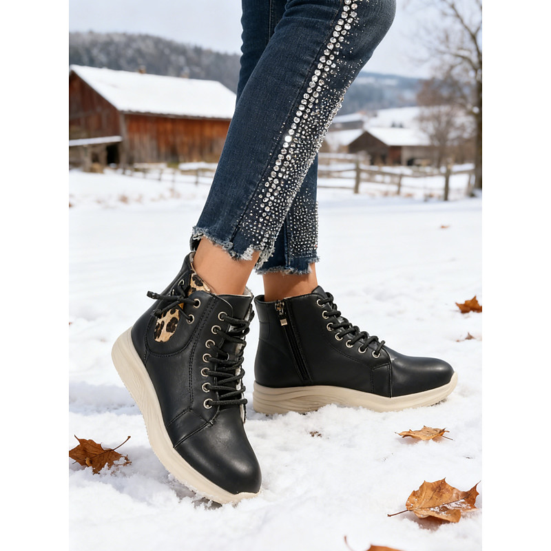 Women's Light Brown High-Top Sneaker Boots with Leopard Print – Lace-Up Side-Zip Casual Ankle Booties for Walking, Travel Street Style