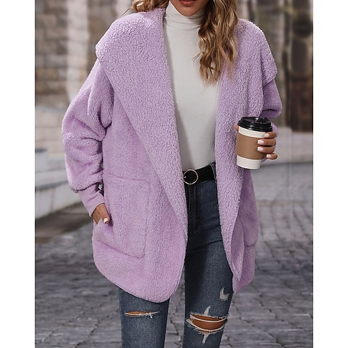 Per donna Cappotto Invernale Cappotto Teddy Caldo Confortevole Tasca Aperturaanteriore Casual Tinta unica Vacanza Streetwear Casuale Abbigliamento quotidiano Regolare Con Cappuccio Vestibilit