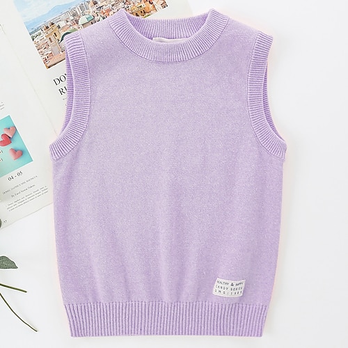 Bambini Ragazze Pullover Maglione Tinta unica All'aperto Senza Maniche Girocollo Moda 4-12 Anni Autunno Giallo Rosa Blu marino