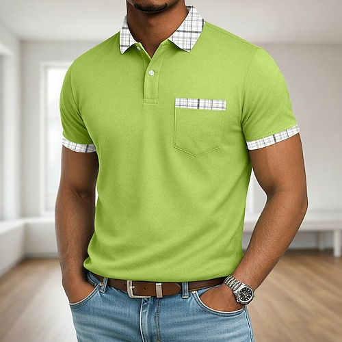 Per uomo Maglia da golf Polo Piqué Casuale Affari Classico Manica Corta Moda Essenziale Tinta unica Plaid Bottoni Estate Primavera Primavera Autunno Vestibilità regolare Bianco Vino Blu marino Verde
