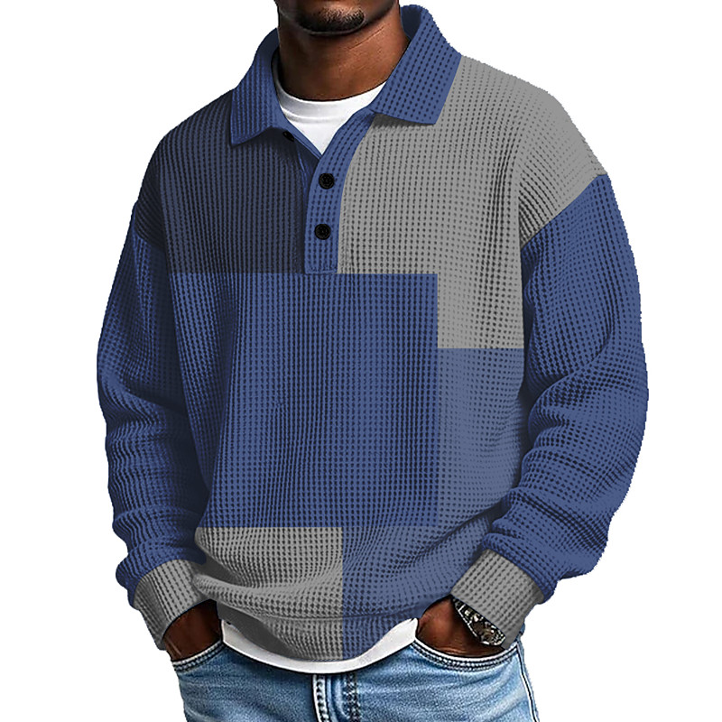Men's Geometric Color Block Waffle Polo Shirts Textured Long Sleeve Polo Shirts Lapel Casual Athleisure Daily Wear 3D Print Spring Fall Winter Blue Navy Blue Purple