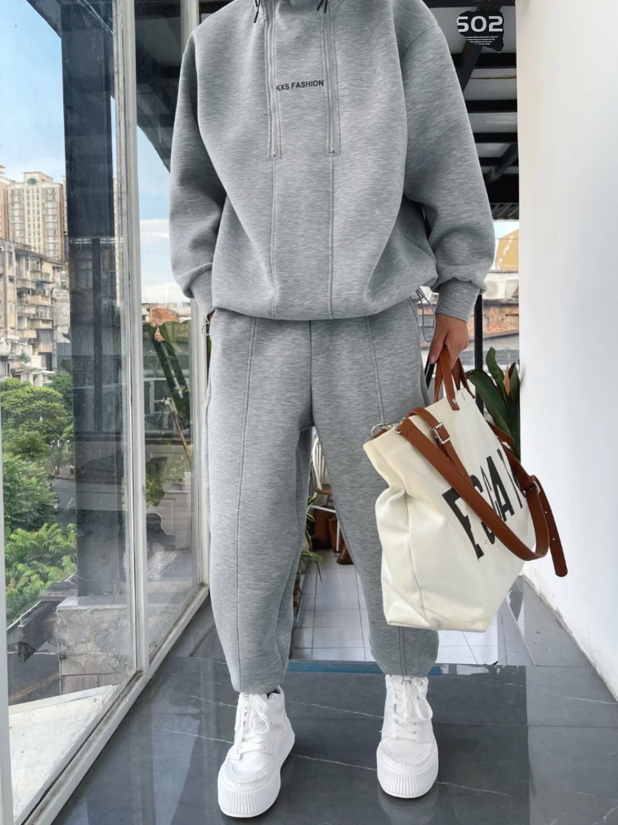 Women's Active Fashion Blouse Pants Sets Long Sleeve Shirt Collar Solid Color Zipper Drawstring Outdoor Vacation Black White Brown Fall Regular Fit