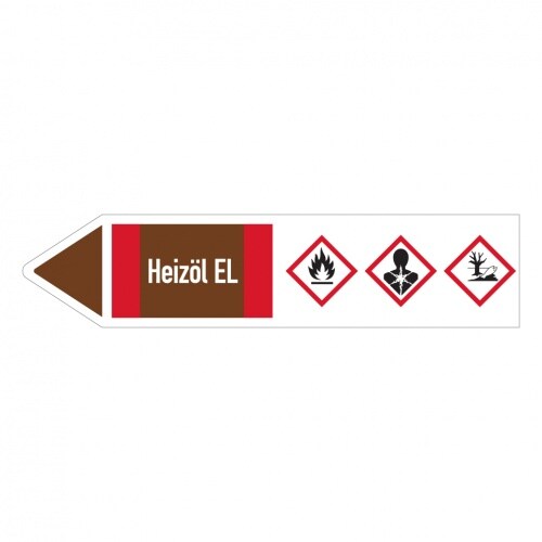 Aufkleber I RKZ-Etikett Heizöl EL,links,DIN 2403,braun/weiß/rot,ab Ø 90mm,440x100mm,2/Bogen