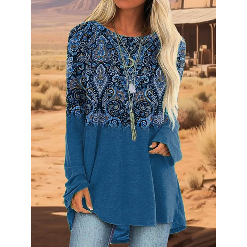 Women's T Shirt Graphic Tribal Vintage Stylish Casual Long Sleeve Crew Neck Long Tops Daily Going out Weekend Print Blue Purple Green Khaki Spring Fall