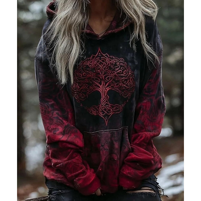 Women's Pullover Hoodie Sweatshirt Graphic Animal Tribal Punk Vintage Metallic Long Sleeve Hooded Regular Tops Street Dailywear Casual Blue Dark Red Orange Green Spring Fall Winter