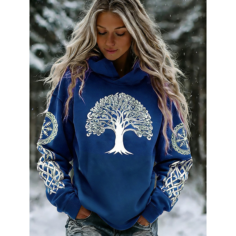 Women's Pullover Hoodie Sweatshirt Graphic Geometric Tribal Casual Long Sleeve Hooded Regular Tops Casual Party Evening Wear Street Print Blue claret Purple Green Spring Winter