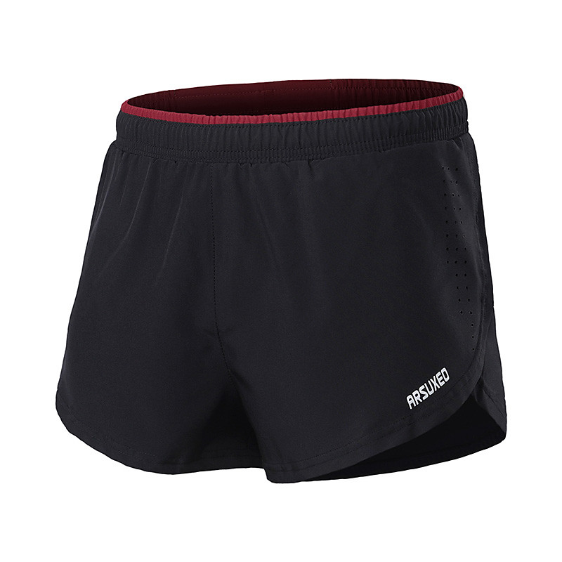 Men's Running Shorts with mesh liner Sports Shorts Solid Colored Quick Dry Split Zipper Pocket Dark Grey Wine Dark Blue / Micro-elastic / Athleisure
