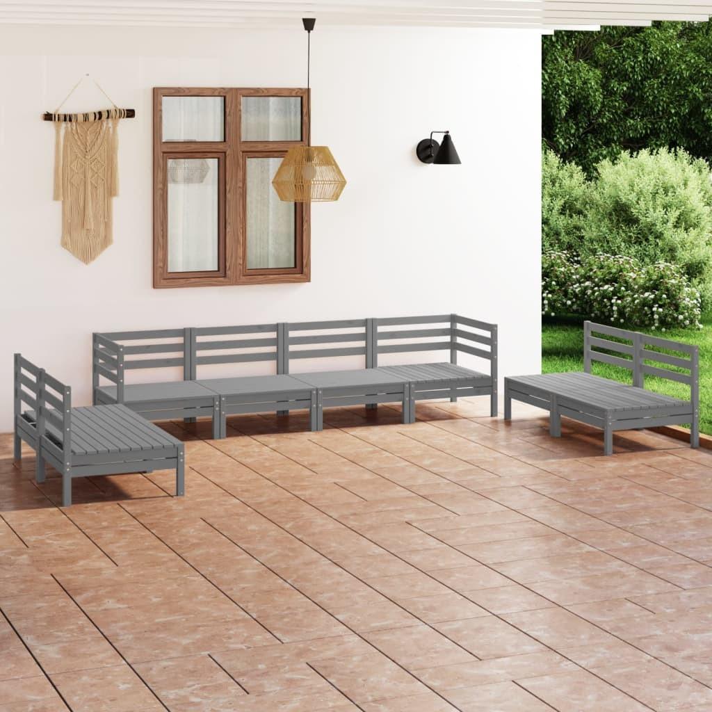 Loungesæt til haven 8 dele massivt fyrretræ grå