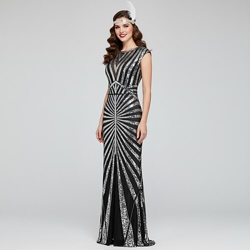 Retrò Vintage Anni Ruggenti Anni 1920 Lunghezza al pavimento Abiti Set di accessori Abito da sera Maniche corte Il grande Gatsby Invitato al matrimonio Paillettes Paillettes Scollo a V Costume Per