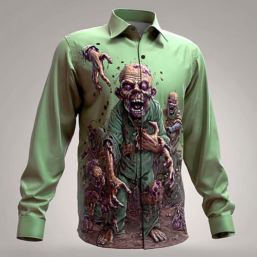 Camicia Button Up con zombie da uomo maniche lunghe stile punk gotico scuro all'aperto vacanza estate primavera colletto 3D stampa camicie blu viola verde khaki