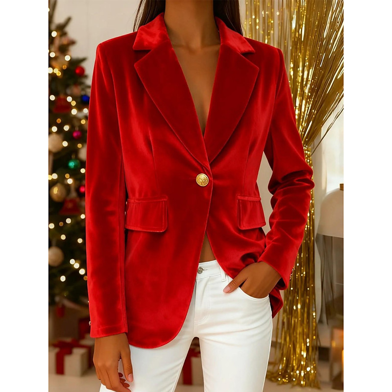 Women's Suits Velvet Blazer Warm Open Front Elegant Fashion Glitters Plain Formal Wedding Anniversary Long Notch Lapel Regular Fit Long Sleeve Blue Black
