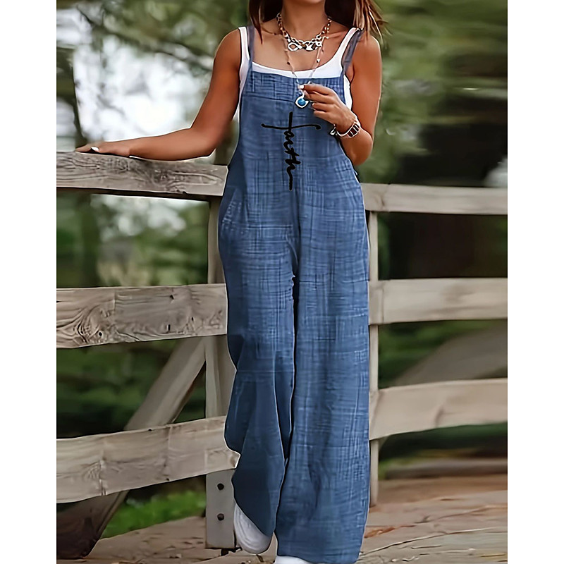 Women's Jumpsuit Active Graphic Sleeveless Wide Leg U Neck Pocket Daily Vacation Regular Fit Blue Summer