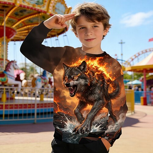 Ragazzi 3D Grafico Lupo Felpa Maglione Manica Lunga Stampa 3D Primavera Autunno Attivo Moda Streetwear Bambini 4-12 Anni Girocollo Casuale Quotidiano All'aperto Vestibilità regolare