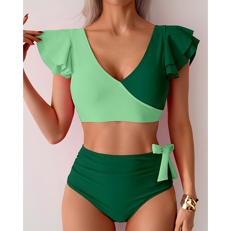 Women's Swimwear Bikini 2 Piece Cheeky Swimsuit Backless High Waist Slim Vacation Beach Wear Color Block Halter Neck Sleeveless Bathing Suits