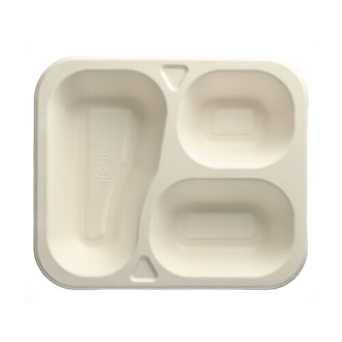 Papstar Siegelschalen aus Zuckerrohr, 3-geteilt 21,2 x 25 cm weiß 6 x 100 Stück
