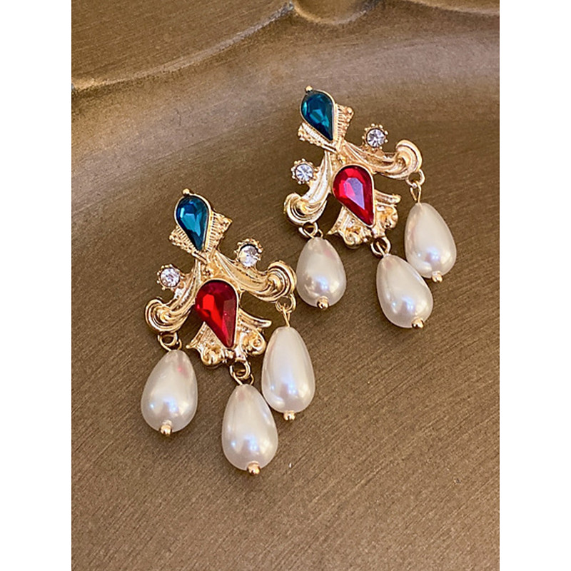 Women's Mardi Gras Multi-Style Gold Alloy Crystal Dangle Earrings - Luxury Retro Accessory for Carnival and Themed Parties