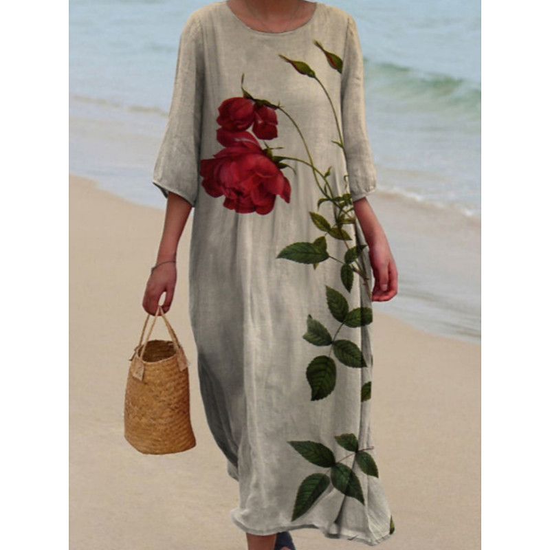 Women's Midi Dress Casual Dress Print Dress Fashion Modern Daily Beach Weekend Regular Fit Floral 3/4 Length Sleeve Crew Neck White Fuchsia Khaki Apricot Spring Fall Autumn