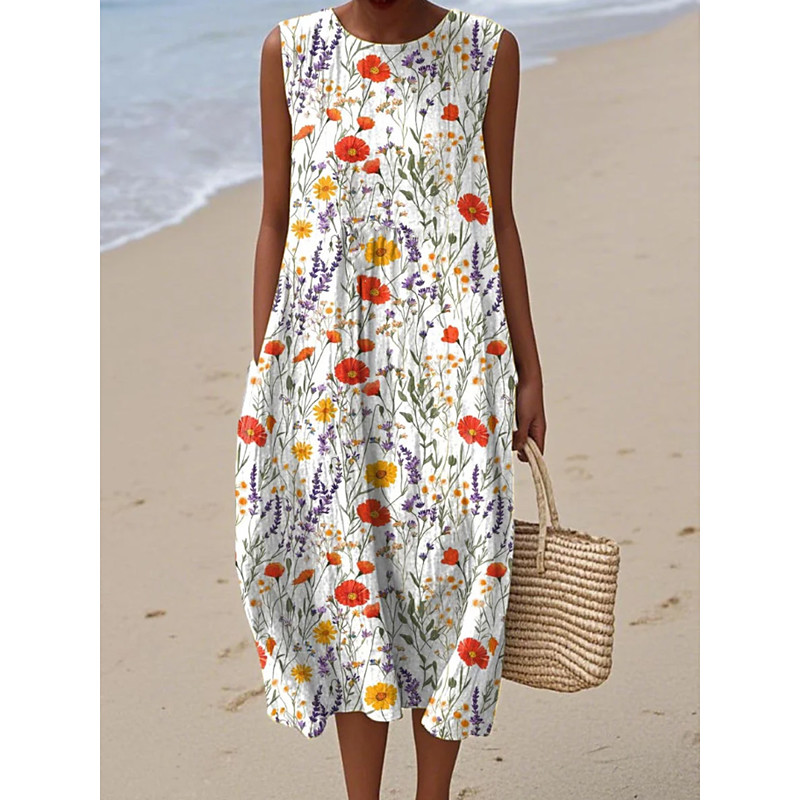 Women's Midi Dress Sundress Shift Dress A Line Dress Vacation Casual Boho Party Going out Beach Loose Fit Floral Graphic Sleeveless Crewneck Blue White / Green White Pink Summer Spring