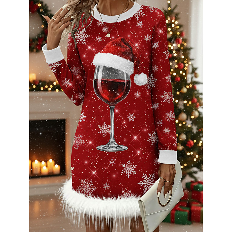 Women's Mini Dress Casual Dress Winter Dress Sheath Dress Fashion Daily Outdoor Vacation Regular Fit Graphic Snowflake Long Sleeve Crew Neck Black Wine Red Spring Fall Winter Autumn