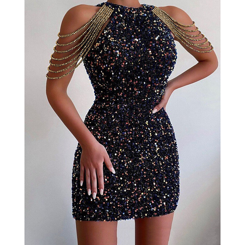 Women's Mini Dress Sequin Dress Party Dress Cocktail Dress Sheath Dress Fashion Modern Evening Party Party Special Occasion Regular Fit Plain Sleeveless Halter Neck Black White Pink Spring Fall Winter