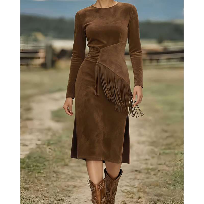 Women's Skirt Bodycon Fashion Casual Midi High Waist Skirts Plain Tassel Fringe Micro-elastic Street Daily Wine Black Light Brown Dark Grey Spring Suede Polyester