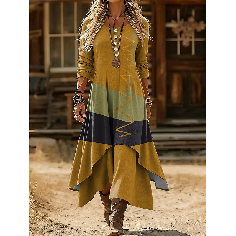 Women's Midi Dress Shift Dress Casual Daily Holiday Regular Fit Graphic Geometric Long Sleeve Crew Neck Blue Yellow Red Purple Spring Winter