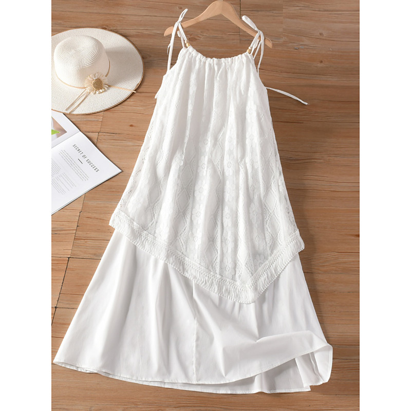 Women's Midi Dress A Line Dress Slip Dress Off The Shoulder Dress Vacation Casual Outdoor Going out Loose Fit Floral Sleeveless Spaghetti Strap White Summer Spring