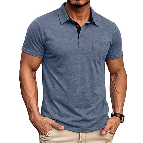 Per uomo Polo Maglia da golf Affari Casuale Classico Manica Corta Moda Tinta unica Bottoni Tasca Estate Primavera Vestibilità regolare Nero Bianco Blu marino Verde Cachi Azzurro chiaro Polo