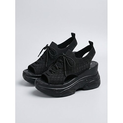 sandali da donna in Flyknit bianco con plateau e tomaia traspirante e chiusura con lacci, design sportivo alla moda per uscite casual, streetwear, avventure estive e uso quotidiano