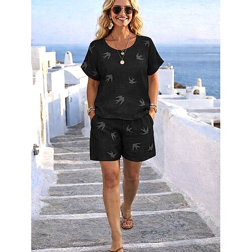Completi di pantaloni corti in lino sintetico da donna top bolero maniche corte collo tondo colore solido moda streetwear quotidiano casual all'aperto bianco estate vestibilità morbida