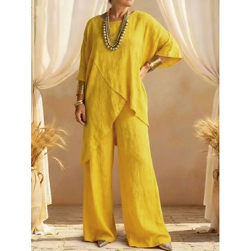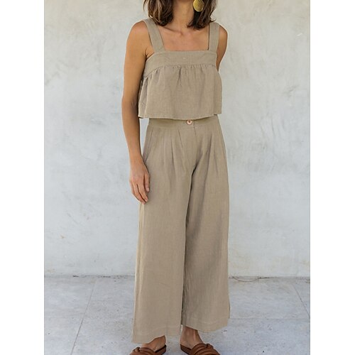 Per donna Set di biancheria in cotone Set da due pezzi Misto lino Pantaloni di Lino Pantaloni Senza Maniche Girocollo Tinta unica Moda Hawaiano Abbigliamento quotidiano Data Bianco Giallo Grigio