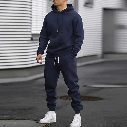 Herren Kapuzensweatshirt Trainingsanzug Jogginganzug Schwarz Rote Marineblau Khaki Hellgrau Mit Kapuze Einfach Tasche 2 teilig Sport Outdoor Täglich Ferien Polyester Streetwear Basic Lässig